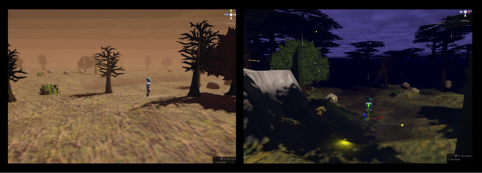 Assets Used: Fort Hollowvalley was built using various purchased Unity assets that I had imported into Blender in order to create an optimized environment. Many textures had to be re-created or heavily modified to fit the artstyle. As well, there are additional assets that I’ve designed.